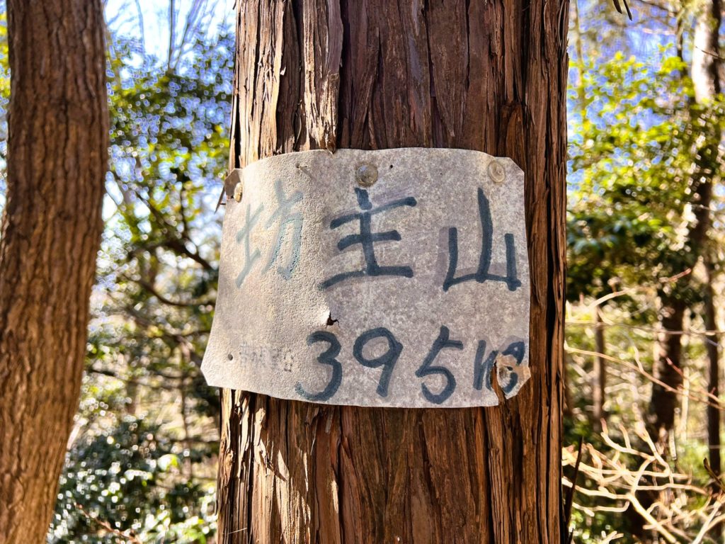 出発から2.8km 約1時間。標高395m「坊主山」に到着です。