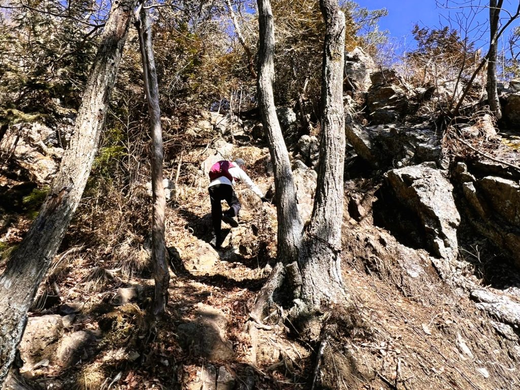 直登コースに入るとすぐ、これまでの楽々ハイキングが幻だったかのように、山容が変化をみせ始めます。