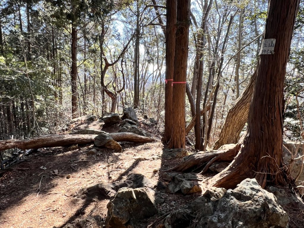 山頂は狭く眺望もないため、わざわざ訪れる人も少ない山です。