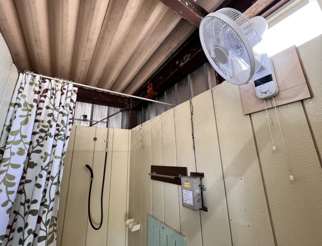シャワーは、コインシャワーで3分100円のタイプ。
