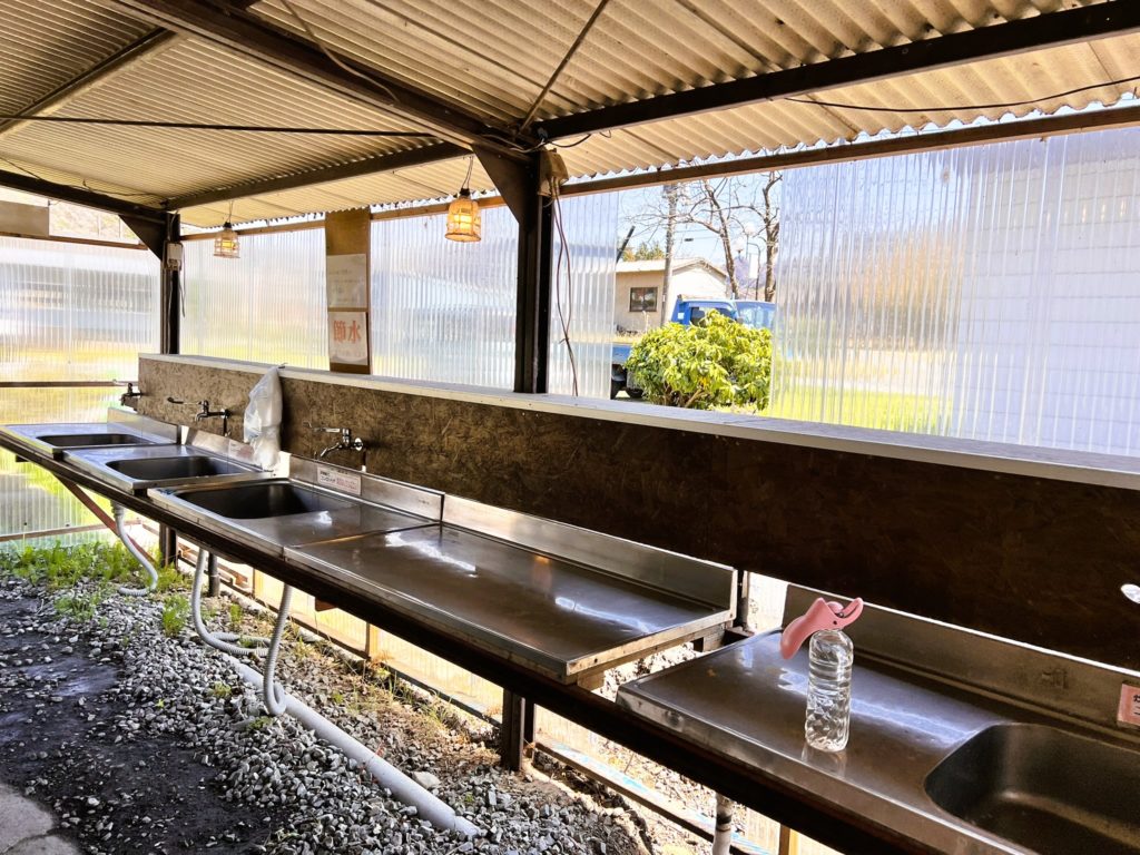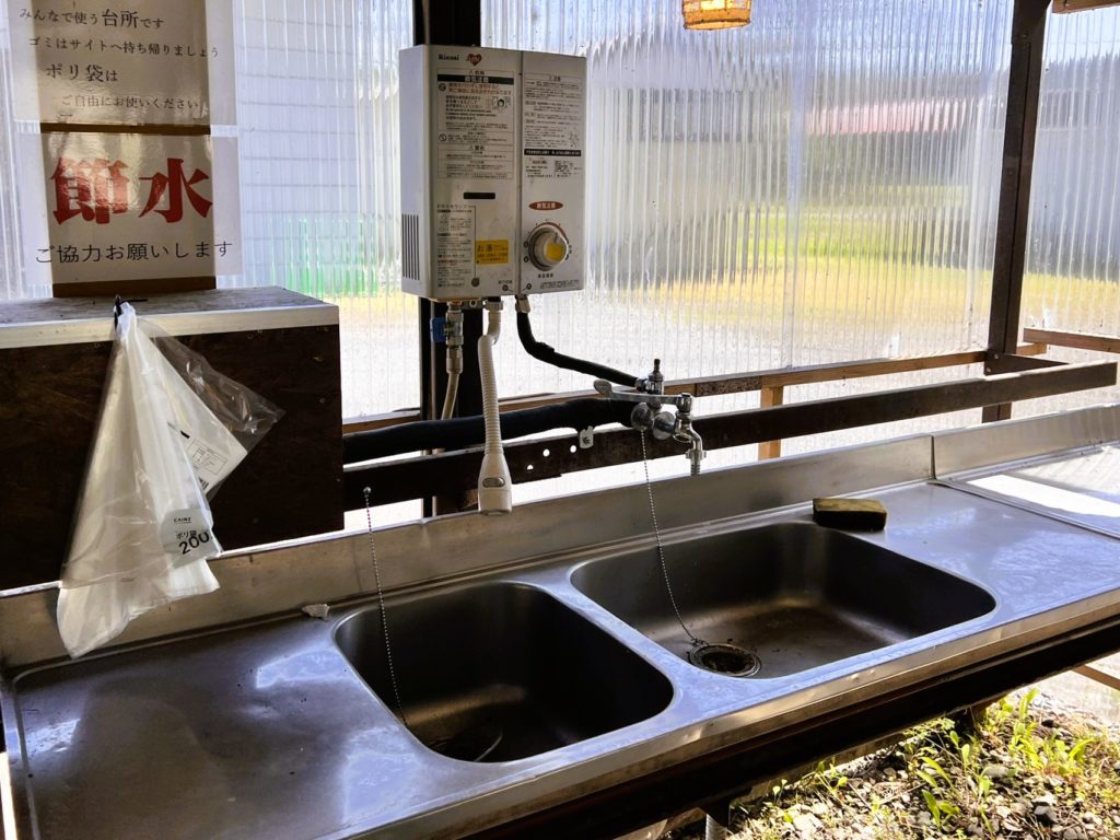 調理台もある広々とした炊事場は、湯沸かし器が1ヶ所あり、お湯が使えます。