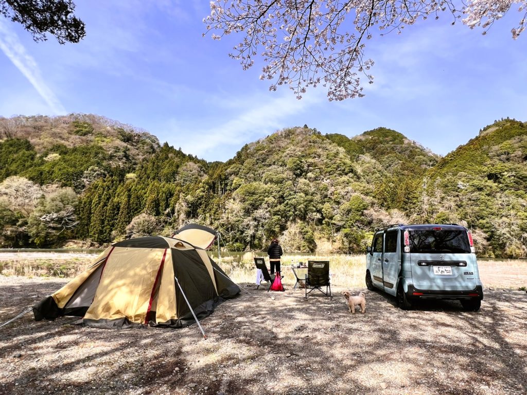 季節によって梅や桜を楽しめる区画サイトもあり、川遊びも楽しめます。