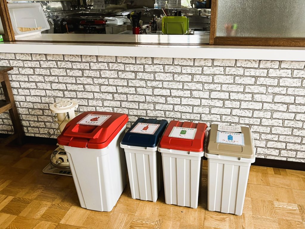 ペーパータオル、ティッシュペーパー、ハンドソープがあり、ゴミ箱も設置されています。