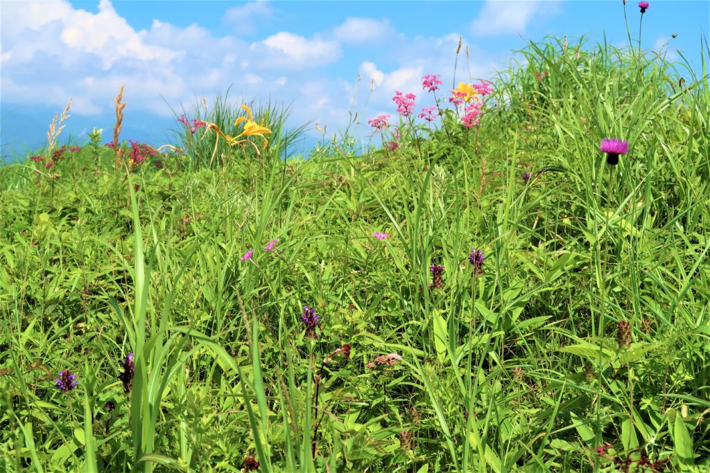 飯盛山のすぐ隣に位置する山です。山頂直下にはカラフルなお花畑が広がり、カメラを向ける人も多く見受けられました。