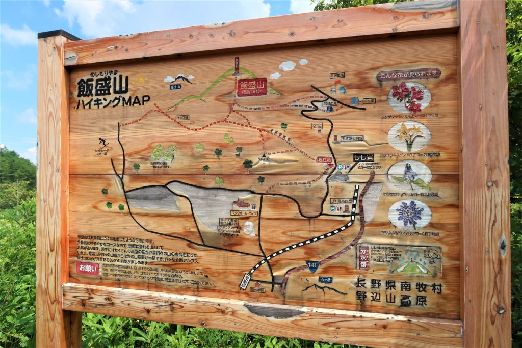 車の場合は、平沢峠駐車場(標高1,450m)が便利です。飯盛山山頂まで1時間です。