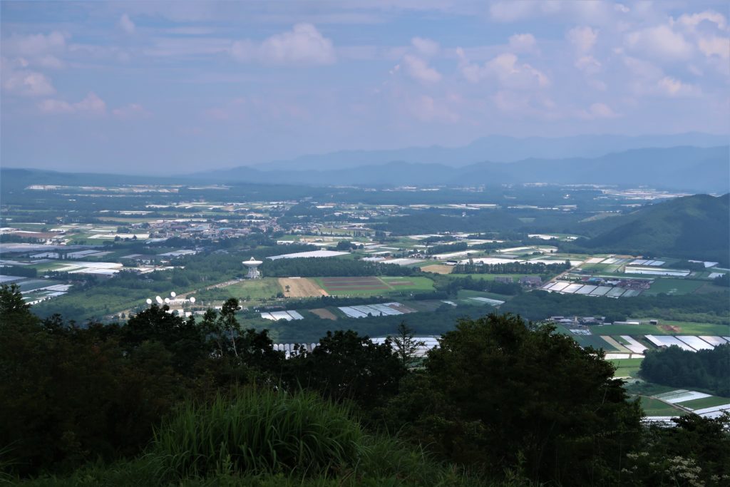 山頂は広いスペースがあり、眼下には野辺山方面の街並みが広がります。