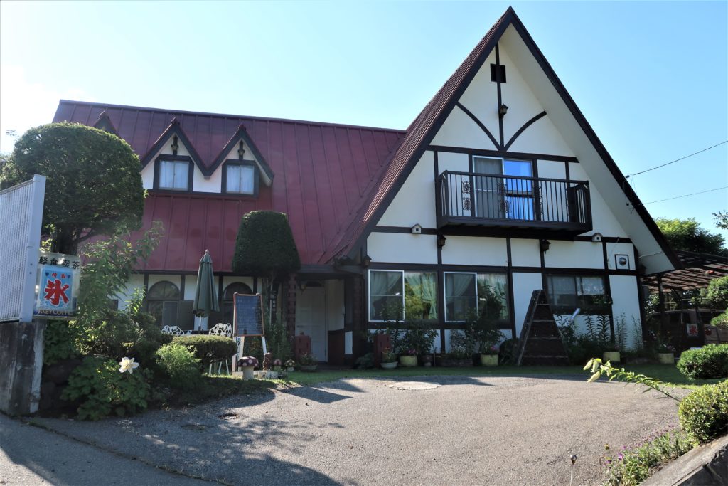 分岐を曲がるとすぐに「ロッジ飯盛山」の「氷」の旗が目に入ります。
