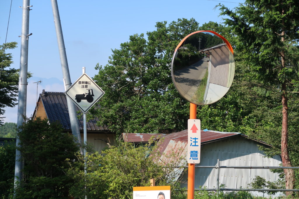 ここまで約1時間。ミラーと「農耕車に注意」の看板が目印です。