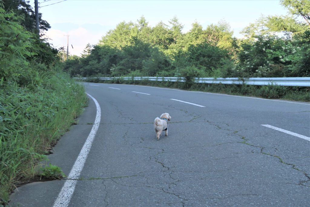 地元のワンちゃんがお散歩中のようでした。毎日こんな大自然の中をお散歩できるなんて羨ましいです。