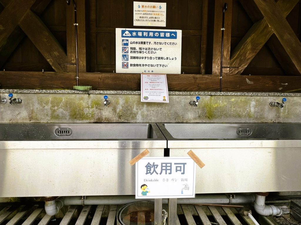 飲用水は、センター入口の右側にある『飲用可』の洗面所で補給できます。