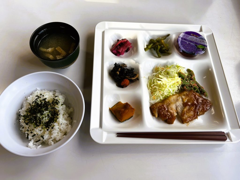 いつもデザートのゼリーが付いているのですが、果汁たっぷりで美味しいです♪