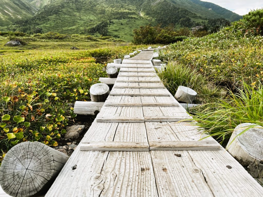 周辺はなだらかな「南竜湿原」が広がり、木道が整備されています。