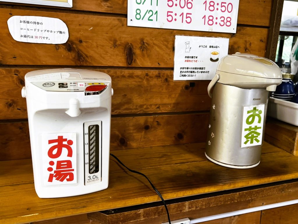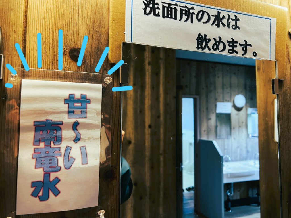 周辺に川があるため、水源豊富なこちらの山荘では、天然水『甘~い南竜水』がいただけます。