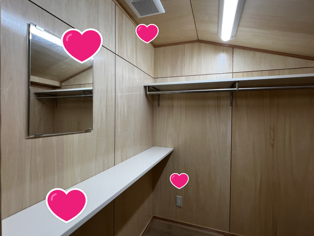ピカピカの室内は、4~5人が一度に着替えられるくらいの広いスペースです。