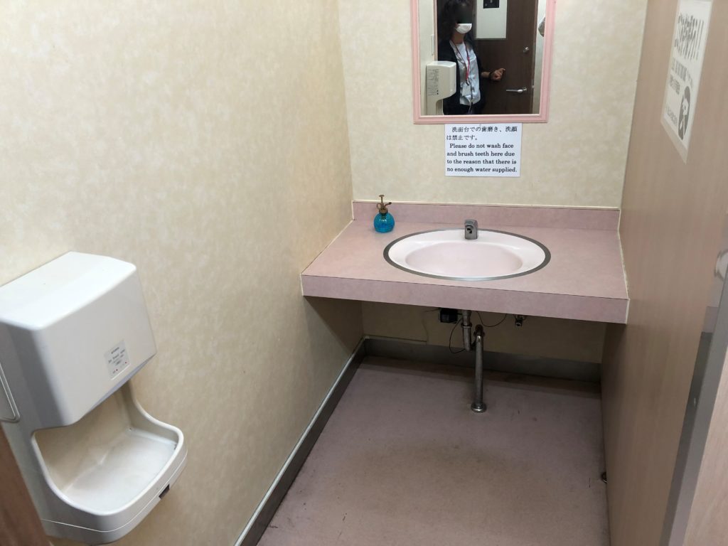 雲上閣でもトイレ・洗面所は1ヶ所で、節水のため洗面所での洗顔や歯磨きは禁止となっています。